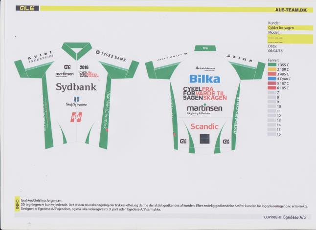 Sådan stod der på trøjerne hos de frivillige hjælpere, der sidste fredag var travlt beskæftiget med at stille forfriskninger, vand, kaffe sandwich m.m. frem til de 115 cykelryttere,der deltog i dette års cykelløb til fordel for IFS ,der er en landsdækkende idrætsforening for psykisk svage. Også cykelrytterne havde logoet : Cykel for sagen fra Varde til Skagen på deres tøj m.m.